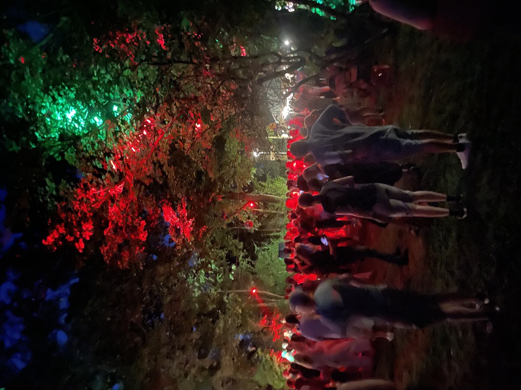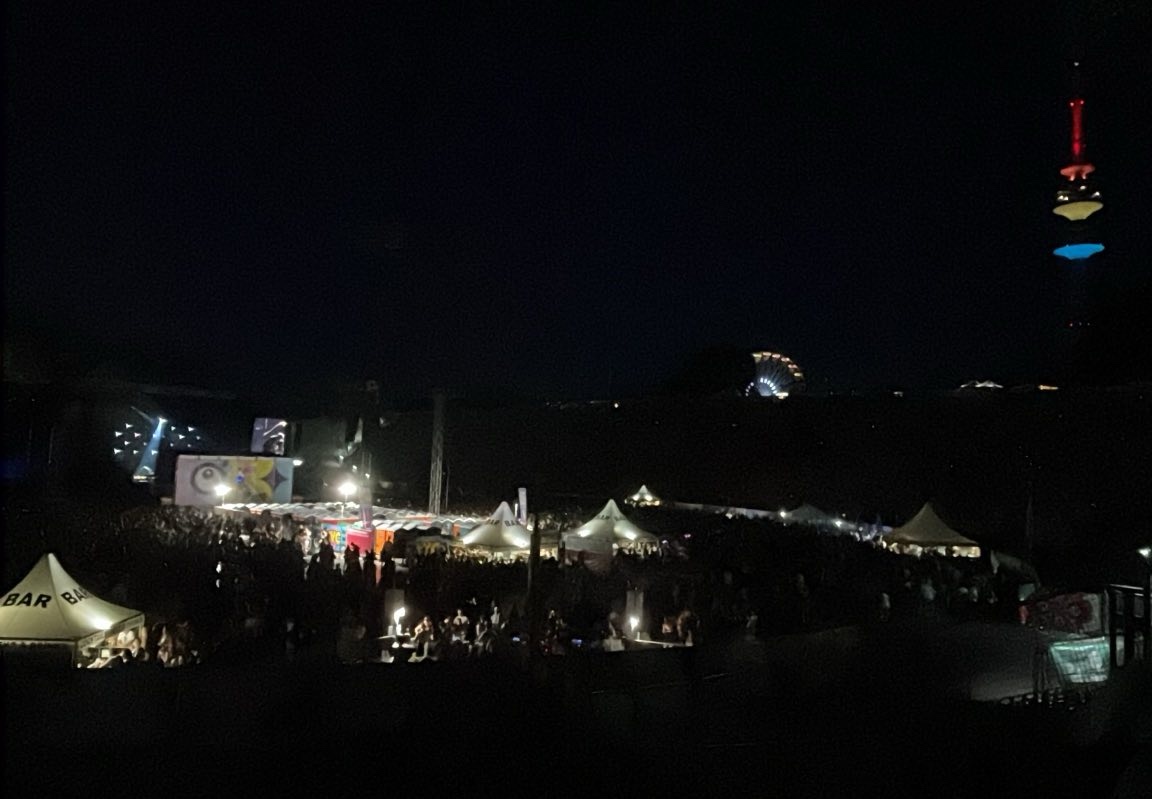 1/4 der Familie sonnt sich auf dem Superbloom im Olympiapark und schickt uns ein Bild von Cro während wir Erwachsenen auf einem großen Abendspaziergang sind.