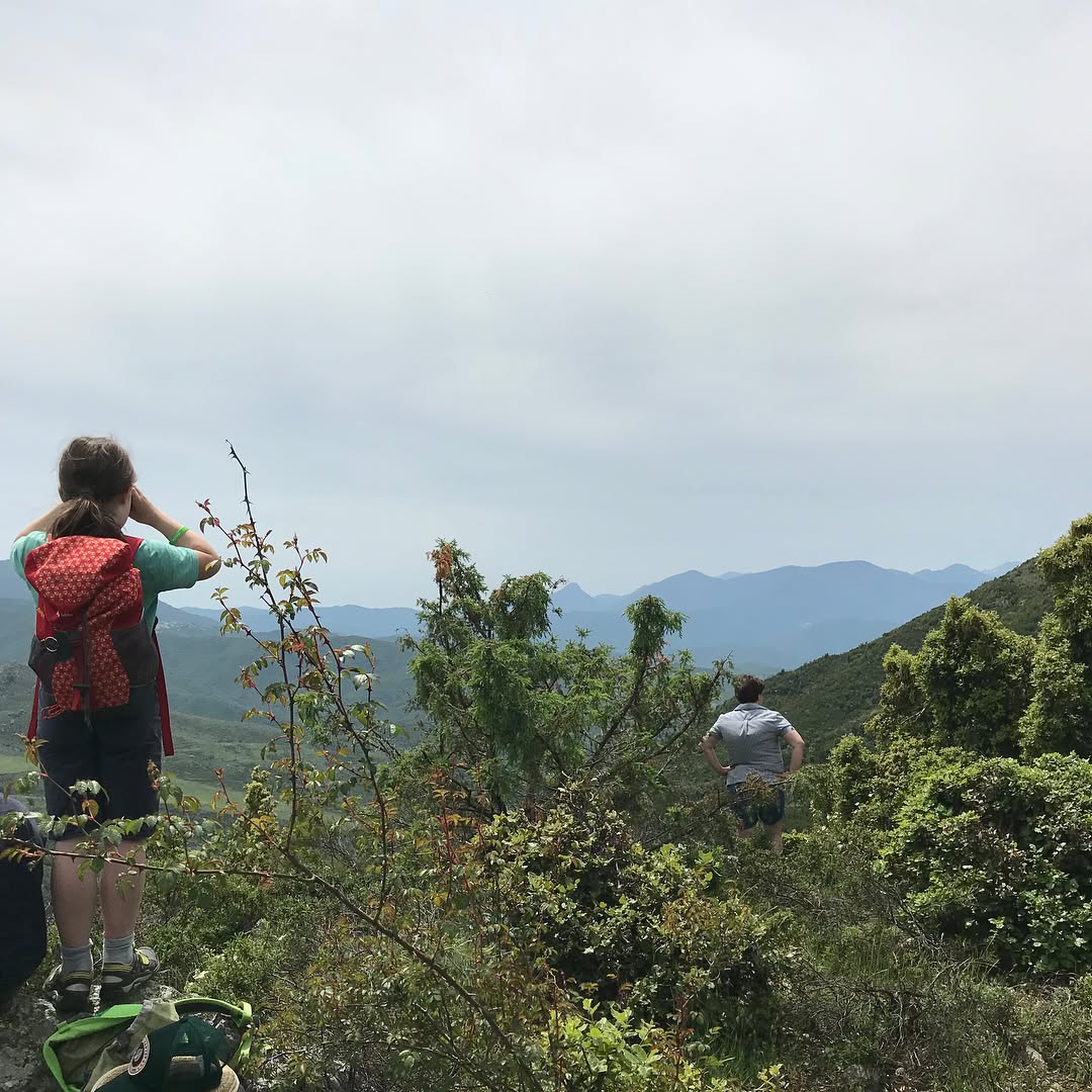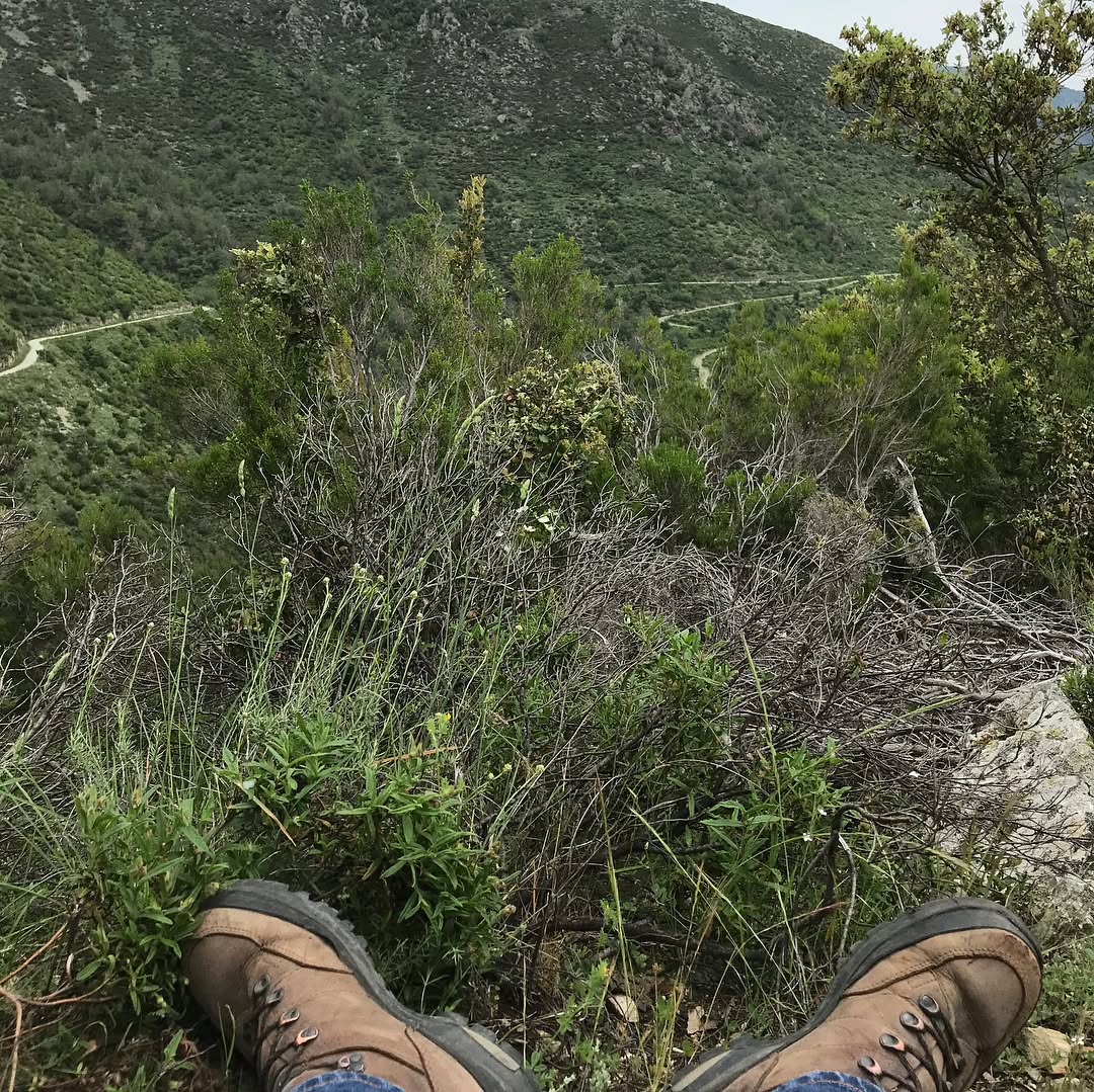 Castellare-di-Mercurio ist schon wieder so ein Bergdorf, wo die Straße aufhört. Insgesamt 33 Einwohner und jetzt für fünf Tage 37, weil wir dort in einem sehr netten, alten Eckhaus übernachten. Wenn ich ein Buch schreiben würde, würde ich mich hier zwei Monate einmieten, den ganzen Tag auf der Terrasse verbringen, tippen und ab und zu ins bewaldete Tal kucken. Über dem Wald stelle ich mir dann Sprechblasen vor mit fluchenden Römern und lachenden Galliern. Corte liegt 20 Minuten entfernt. Dort gibt es die tollen Touren mit den Gumpen, aber heute sind wir erst mal direkt vom Haus aus losgelaufen. Ich hab was geplant, aber weil ich nur so halb guten Orientierungssinn habe und weil die eingezeichneten Wanderwege hier auch nur so halbzuverlässig sind, haben wir geplante Abkürzungen nicht gefunden und dafür andere Abkürzungen neu entdeckt. Vom Dorf geht es am Hang entlang über einen schönen Wandersteig bis zur Capella San Martinu, dort dann noch ein Stück nach links hoch und an einer windgeschützten Stelle mit Aussicht erst mal Mittagspause. Dann wieder runter zur Kappelle und auf der Serpentinenstraße zurück nach Castellare-di-Mercurio. Je nach Kurvenlage hat man immer wieder einen schönen Blick auf auf das Bergdorf. Wir treffen noch ein paar Pferde, sonst ist hier eher wenig los.