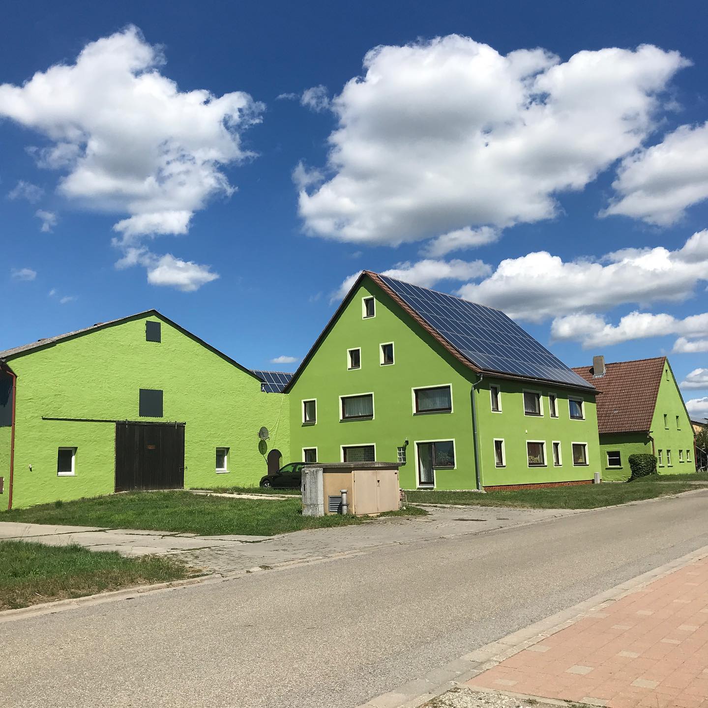 Am Beginn des Altmühltals komme ich am grünsten Hausensemble der Welt vorbei. Der Farbwert heißt offiziell „Shrek-Grün“.
